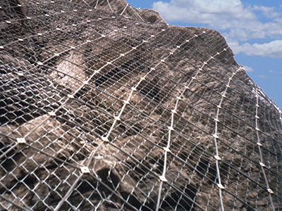 作用原理上类似于喷锚和土钉墙等面层护坡体系,但因其柔性特征能使系统将局部集中荷载向四周均材质:钢丝绳网、普通钢丝格栅(常称铁丝格栅)和TECCO高强度钢丝格栅 匀传递以充分发挥整个系统的防护能力,即局部受载,整体作用,从而使系统能承受较大的荷载并降低单根锚杆的锚固力要求 。